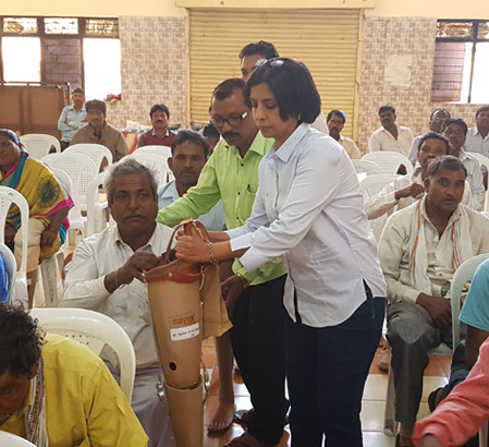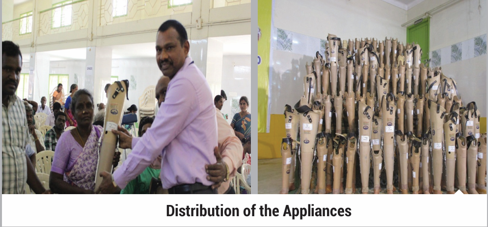 Prior to giving the appliances, a trial camp is conducted to check if they fit the beneficiary properly. The prosthetic team trains beneficiaries how to wear and maintain the device.